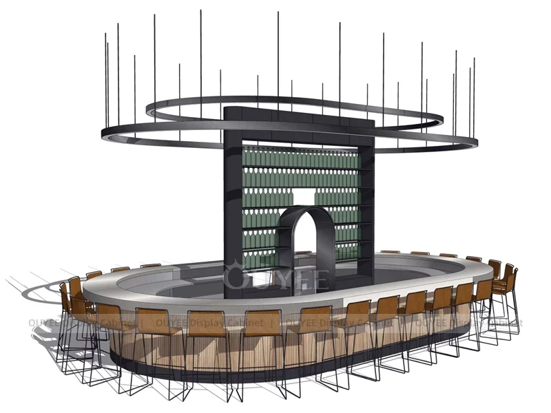 OUYEE supports coffee counter design, shop drawings, material selection, manufacturing, packing, and export delivery. We can customize the fixture according to your brand color, logo, store size, electrical planning, and installation requirements.