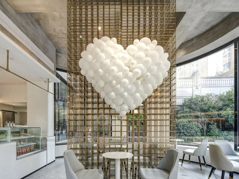 This coffee counter can be adjusted for front service, pickup, packaging, retail display, and back counter storage. It is suitable for new cafe builds, beverage shop renovations, and commercial kiosk projects that need a clear branded counter area.