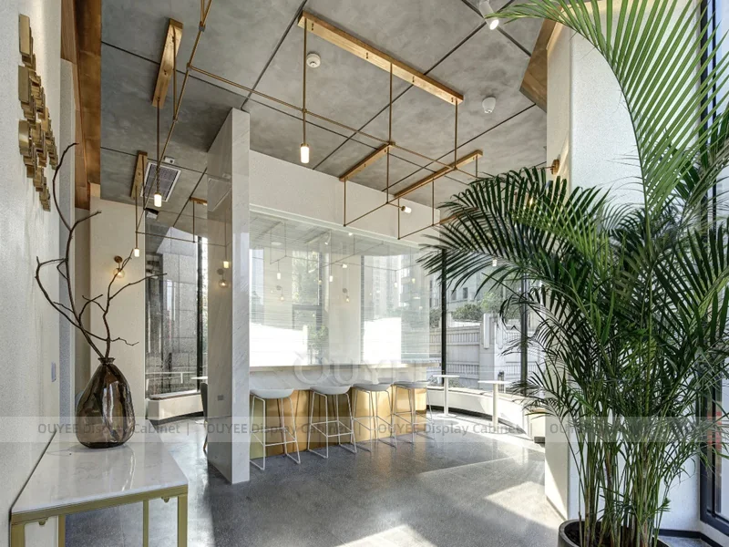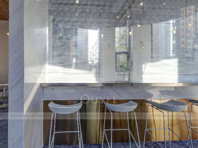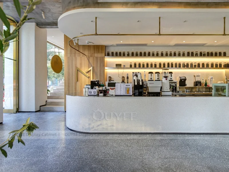 OUYEE supports coffee counter design, shop drawings, material selection, manufacturing, packing, and export delivery. We can customize the fixture according to your brand color, logo, store size, electrical planning, and installation requirements.