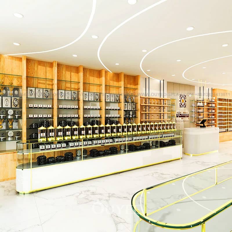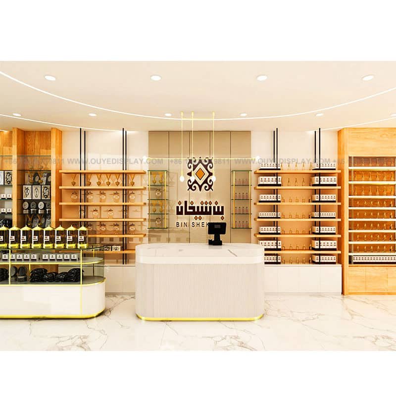 Modern Perfume Shop Interior Design Wooden Glass Display Showcase Cabinet