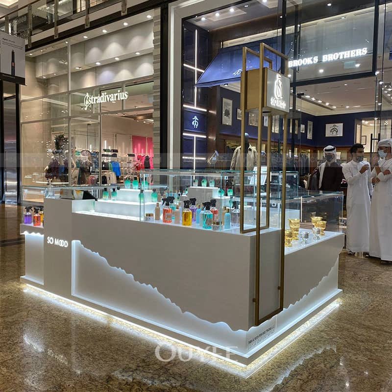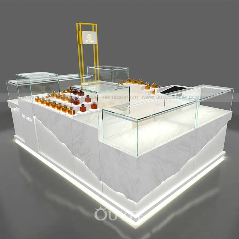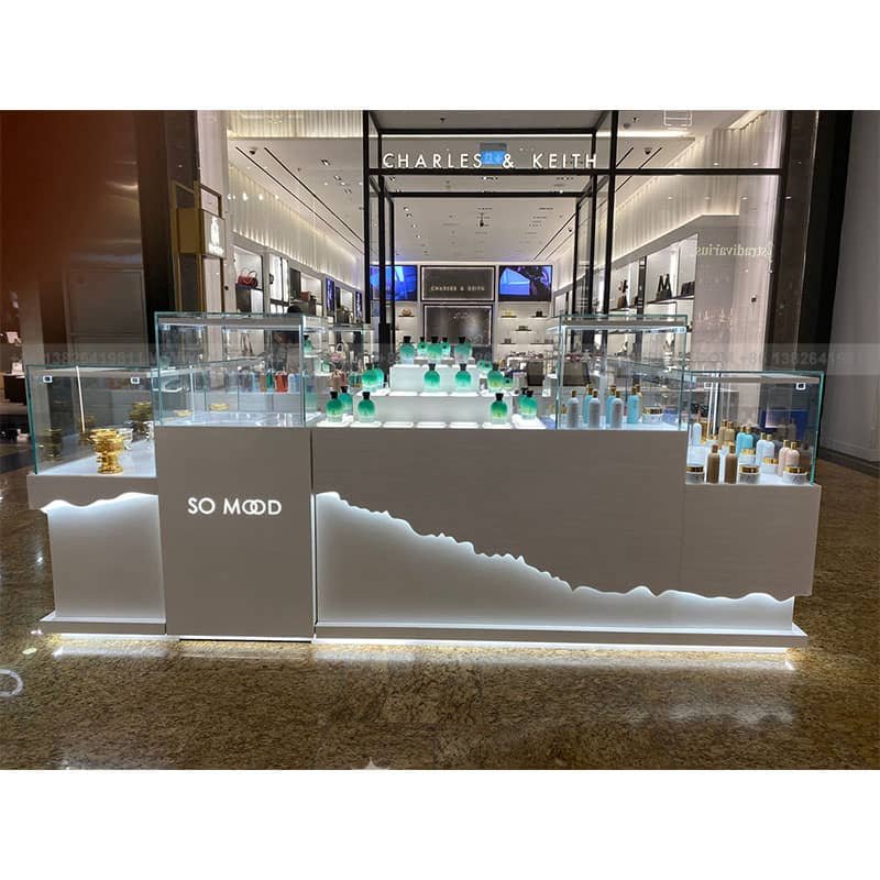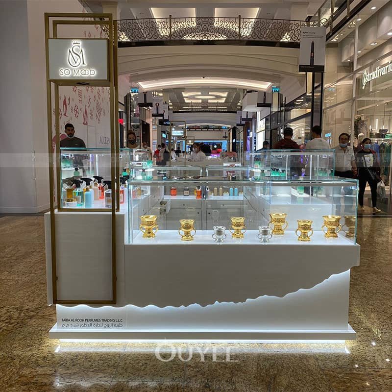 In conclusion, the perfume display kiosk is an essential piece of furniture in a shopping mall environment. It enhances the visual appeal of perfumes, attracts customers, and creates an engaging shopping experience. The kiosk’s design, adjustable shelves, lighting, and customization options contribute to a captivating display that promotes brand identity and encourages customers to explore and indulge in the world of perfumes. The use of a perfume display kiosk is a valuable addition to any shopping mall, elevating the retail experience and driving customer engagement.